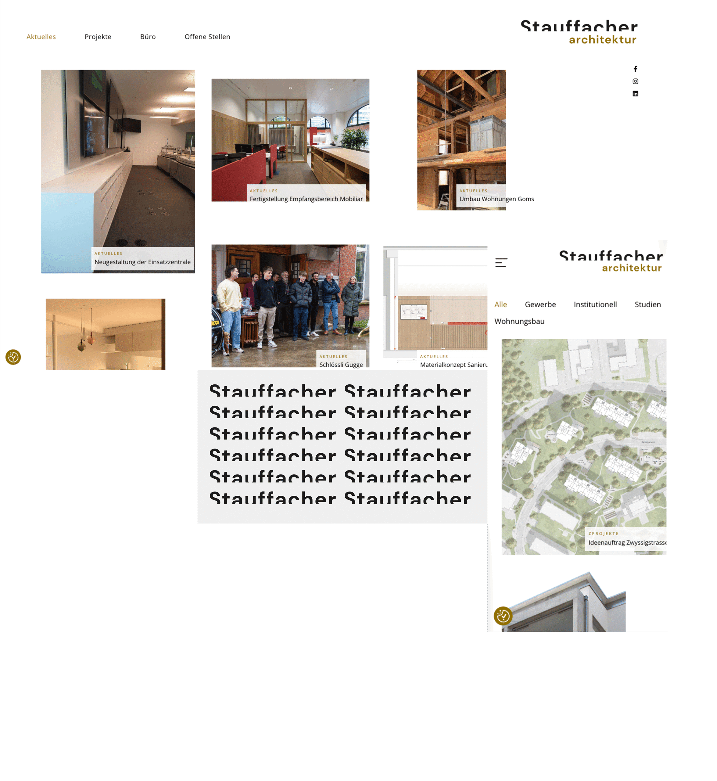 Für Stauffacher Architektur in St. Gallen haben wir eine Website gestaltet, die ebenso klar wie ungewöhnlich ist – genau wie das Architekturbüro selbst. Ausgangspunkt war eine Architektur, die sich liebevoll mit dem „Zwischenraum“ auseinandersetzt – dem Feinschliff zwischen Bestand und Neuem, zwischen Handwerk und Raumgestaltung Stauffacher Architektur. Die Website präsentiert Projekte und Baufortschritte in ruhiger, strukturierter Übersicht, während eine persönliche Team- und Philosophie-Seite den Menschen und Gedanken hinter der Architektur Raum gibt. Mit ihrem zeitlosen, reduzierten Design bleibt der Auftritt genauso prägnant wie die Architektur, die darin sichtbar wird.